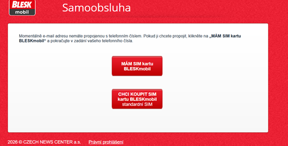 V dalším kroku si přidáte své telefonní číslo, pokud již máte BLESKmobil SIM kartu, zvolte tuto možnost.